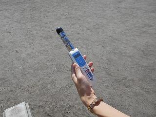 これは、毎日使っている暑さ指数(WBGT)計測器です。暑さ指数が31以上になり、運動中止になる日がまだまだありそうです。熱中症にも気を付けて指導をしています。
