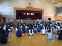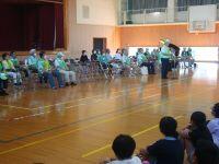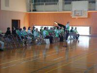 本校では、各地区の公民館単位でスクールガードをしていただいており、総勢100名を超えるスクールガードの方々がいらっしゃいます。今回は、お忙しい中、41名のスクールガードの方々が来校され、対面式を行いました。
