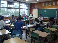9月6日(水)。先生方は、児童が下校した後、9月20日(水)に行われる「都城市小中一貫学力向上指定研究学校 小中合同授業研究会」での授業の進め方を全職員で話し合いました。