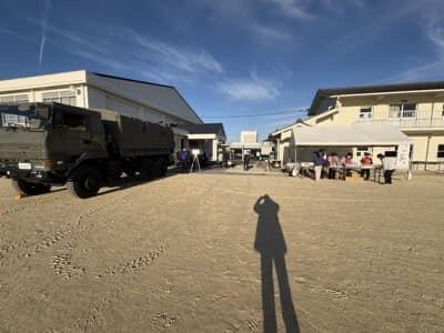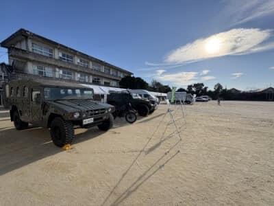 すでにたくさんの方が参集して、自衛隊車両、パトカー、救急車両など、多数展示されています。