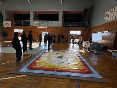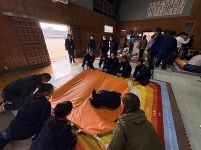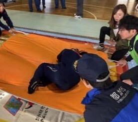 「体育館で地震に遭ったら、どこに逃げますか?」