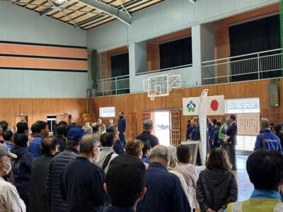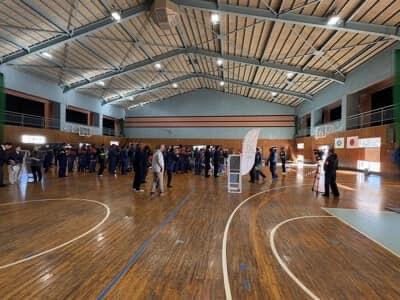 中学生、350名ほど。自治公民館の関係者の皆様、150名ほど。