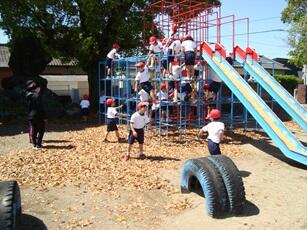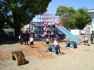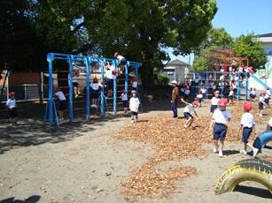 強い風で落ち葉がたくさん舞っていますが、1年生は元気いっぱいです(^^)/
