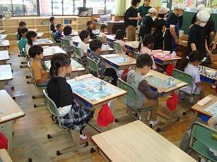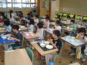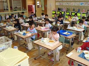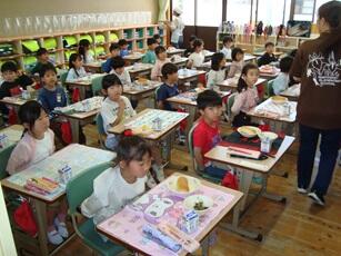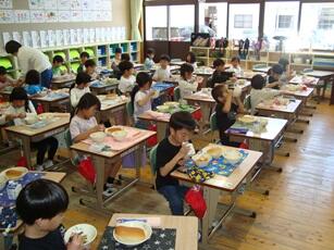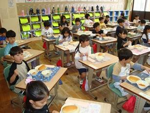 たくさん遊んだ後は、入学して初めての小学校の給食が待っています(*^^*)