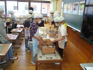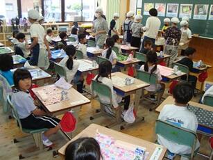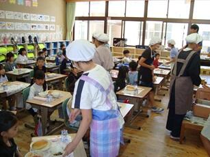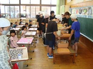 給食をコンテナ室から運んで、配膳してくれるのは6年生のお兄さん、お姉さん達です。