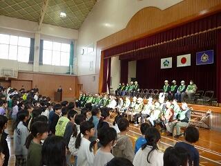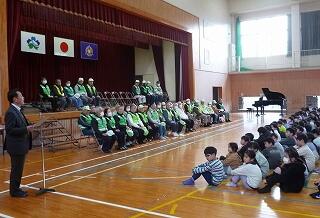 この日は、お世話になっているスクールガードさんに、感謝の気持ちを伝える集会がありました。