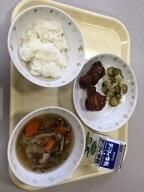 都城なん骨みそ煮 きゅうりとちりめんの和え物 みかん