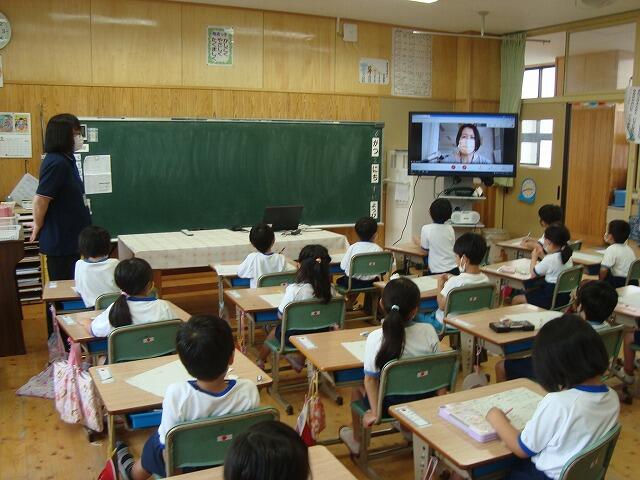 6月2日(水)に、6月の全校朝会を行いました。コロナ感染予防対策として、これまでも校内放送で行ってきましたが、今回はオンラインを使って映像を見ながら話を聞く形態で実施しました。内容は、校長先生からは将来の夢をもつことの大切さ、生徒指導の先生から安全な登下校についての話でした。画面を通してではありましたが、実際に話をする先生の映像を視聴しながらでしたので、子どもたちはこれまで以上に興味をもって熱心に話を聞いていました。本年度から1人1台のタブレットを活用した学習もスタートしましたので、これからもICTを効果的に使った学習や活動を工夫していきたいと思います。