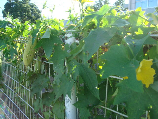 4年生、5年生の理科では、それぞれ春に「ヒョウタン」「ヘチマ」の種を蒔き、現在どちらも花が咲き、