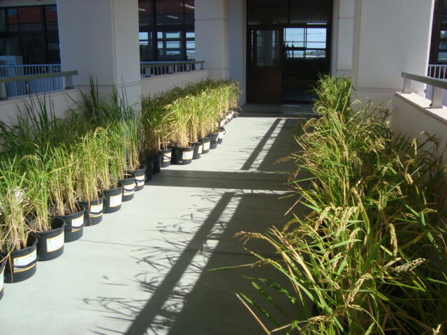 また、5年生が教室のベランダで育てているイネも順調で、早くも実がつき始め、観察の場所を渡り廊下