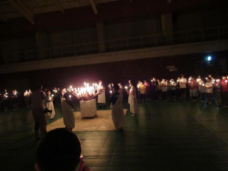 たが、屋外施設でかまどを使ってのカレー作りや、体育館でキャンドルフャイヤーを体験しました。2日目は晴天に恵