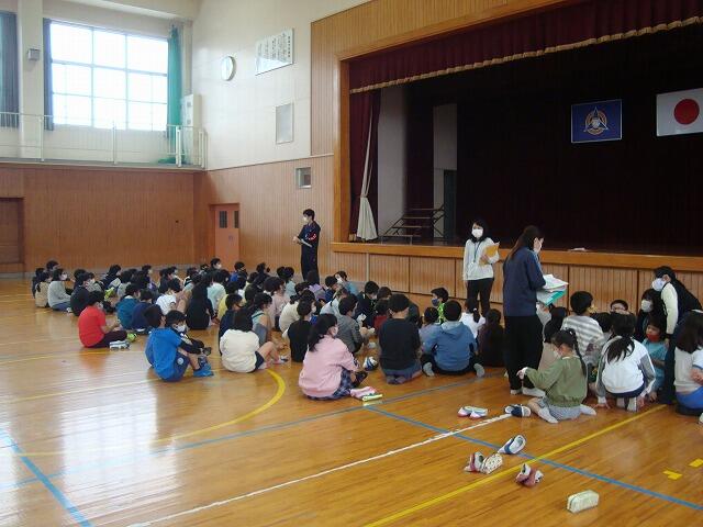 4月13日(火)3校時に、「地区別集会」を実施しました。各地区に別れて、それぞれの担当の先生から、安全な登下校の仕方等について指導を行いました。昨日から新1年生の登校もスタートしましたので、特に、「右側を 一列で 離れないで 話さないで 止まったことを確かめて 見えたらあいさつ」の5つの合言葉を1人1人がしっかりと守って、安全に登下校してほしいと思います。