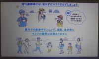 次に、マスク着用については、相手との距離がとれるとき、運動するとき、登下校のときなどは、健康面を考慮して、マスクを外すことがよいと話がありました。