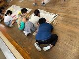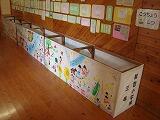 都城市の伝統的な祭りに「六月灯」があり、市内の神社などで祭りが行われます。校区内にある稲荷神社から灯ろう制作の依頼があり、横幅が6mほどある灯ろうに3年生が様々な絵を描きました。子どもたちは、祭りに関わる神社や出店、花火など、思い思いに絵を描き、祭りの楽しい雰囲気が表現された灯ろうが完成しました。