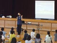 校長先生の話では、まず登校班で登校途中に、けがをした中学生と高校生を助けた児童の話にふれ、地域の方が褒めていたことを伝えました。また、夏休みは、「1学期学校で身に付けたよさを生かす夏休みにしてほしい」、「よく寝て、よく遊び、よく食べて、勉強をしてほしい」と話されました。