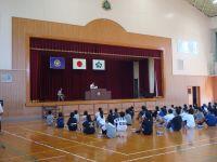 校長先生から、次の3点の話がありました。①「宮崎県いのちの教育週間について」②「屋内外でマスク着用について」③「学校教育目標のかしこくについて」です。