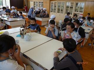 「おいしい、おいしい」という感想が聞かれました。自分で入れたお茶の味は格別だったようです。