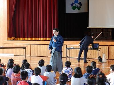京都から能楽の芸能者の方が来られて、能楽の体験学習を行いました。