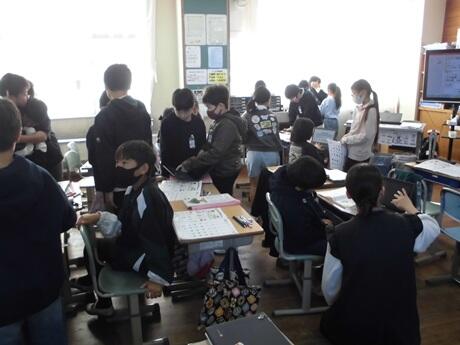 今日は、午後から丸野小学校の5年生が来てくれました。目的は、本校の教室で算数の授業をすること。