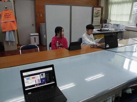 児童の代表作文発表も校長室から配信しました。緊張した様子でしたが、とても上手に発表できていました。