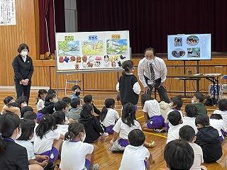 動物の命の尊さに関する読み聞かせをしていただいたり、聴診器で自分の心臓の音を聞いたりしました。