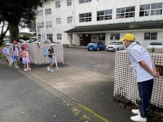 朝、登校してきた人に「おはようございます」と声をかけ、