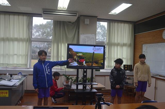 そのあと、2月3日(土)に都城市小・中学生プレゼンコンテストに出場する5名の紹介をし、実際のプレゼンを全校に披露してもらいました。