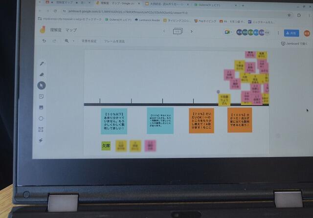 ノートの書いている子もいれば、タブレットで考え話し合っている子もいます。