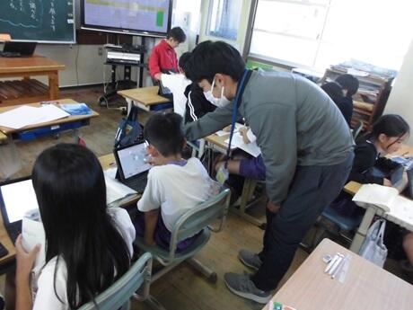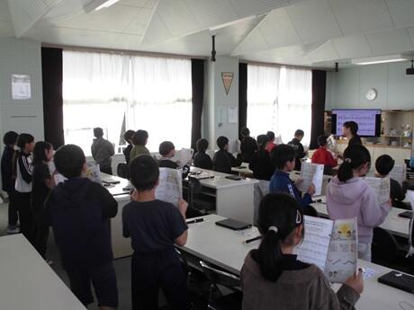 今日は、午後から丸野小学校の5年生が来てくれました。目的は、本校の教室で算数の授業をすること。