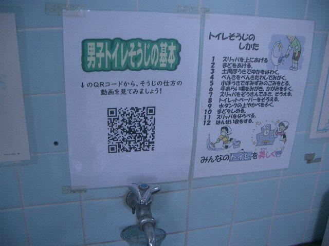 そうじの仕方を紹介する掲示物もあり、二次元コードを端末で読み込むと動画が流れます。