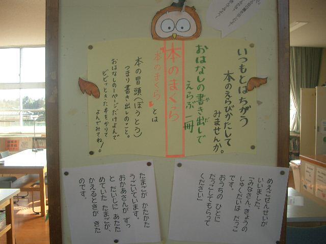 図書室の掲示物には、「本のまくら」という言葉があり、本の選び方が紹介してありました。