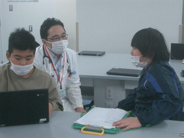 「仕事や研究をしているときは、『よく見る』『よく聞く』『考える」『想像する』ことを大事にしています。そのためには、大人の私たちも知識を蓄えるために勉強しています。また、物事を素早く進めるために、準備や後片付けも大切になってきます。みなさんがやっている学校の勉強もきっと将来につながっていますので頑張ってくださいね。」