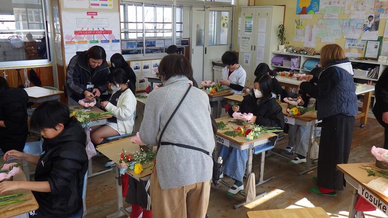 県技能士協会のご協力により、本日、本校の6年生がフラワーアレンジメント講座を受けました(^▽^)/