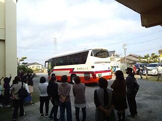 たくさんの子どもたちと保護者の皆さんの見送りの中