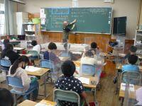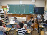今日、1年生は算数、5年生は外国語、6年生は国語の学習がありました。1年生は、「ふえたりへったり」すると数はどうなるのか手作りの『猫バス(段ボール)』に実際に乗ったり、降りたりして数が変わったことを確認した後、算数ブロックを操作する活動に取り組んでいました。5年生は、ローマ字と英語の発音の違いを聞きながら、「どうしてローマ字があるのかな?」ということを考える学習に取り組んでいました。6年生は、情報と情報のつなげ方や、伝え方について知る内容でした。分かりやすく伝えるためにはどうすればよいかを考えながら、教科書の例文に情報を書き足す練習に取り組んでいました。