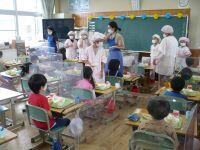 今日1年生は、小学校に入学して初めての給食がありました。そこで、1年生にインタビューしてみました。『給食は美味しいですか?』すると、にこっと笑って『美味しいです。』と答えてくれました。来週の給食も楽しみですね。