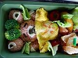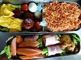 6年生が本日作った弁当を全員分、紹介します。みんな一人で作りました。
