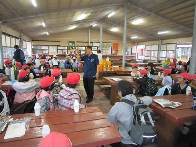 雨の中の遠足(1.2年生) そしてどんぐり工作へ(1年生)