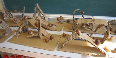 後日 25日(水)、1年生は、雨中遠足の時の残った「エネルギー」を『どんぐり工作』に使いましたよ