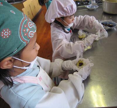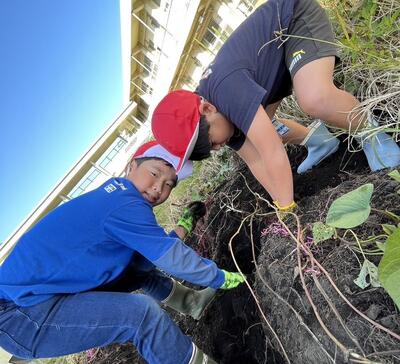 初夏に植えたおイモはどうなった? そう、調理しました(1.2年生)
