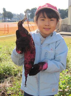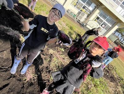 さて、その後のおイモさんはだいじょうぶだったかな?子どもたちは体育館前の庭に植えたイモの芽や葉っぱはいつも目にしていたと思いますが、肝心のイモは・・土の中。