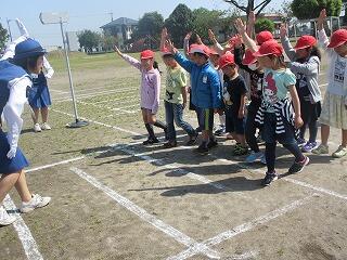 1・2年生は、運動場に描かれた道路や歩道を使って、横断歩道の渡り方や安全確認の方法を学びました。