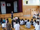講師として、赤十字宮崎県支部、坂元さんに来ていただき、心肺蘇生法についてALDを実際に使用した救命処置を教えていただきました。
