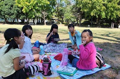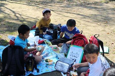 見学の後は科学技術館の隣にある公園に移動し、お昼ご飯を食べました。お弁当の日の実践で、自分でおかずを作ったり、おかずを詰めたりしたお弁当を広げておいしそうに食べていました。