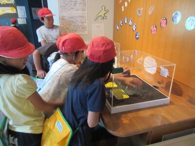 その後は、館内に展示してある生き物の様子を観察して、一生懸命メモを取って回っていました。普段見られないような珍しい生き物に目を輝かせながら見ていました。