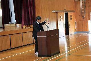 式のあとには、12月で丸野小を離れられる室屋先生の紹介が、校長先生からありました。