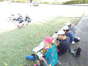 トンビの餌付けに大歓声の子どもたちです。