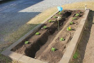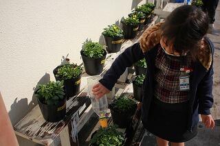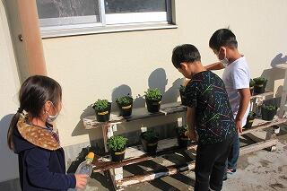 今年も一人一鉢のが始まりました。児童が一鉢ずつ花を育て、卒業式や入学式をその花で飾ります。1年生も一生懸命に水やりを頑張っています。花壇も、春に向けて花を植え替えました。