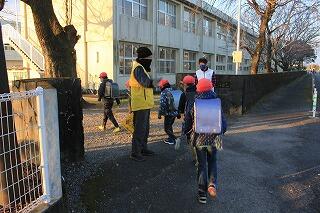 12月16日(水)、今朝は大変寒い朝をむかえました。メダカのいる池も凍り、バケツの氷を見てはしゃぐ児童もいました。この寒さの中、民生委員の皆様が校門に立ち、登校する児童の見守りとあいさつの声掛けをしていただいています。本当にありがとうございます。