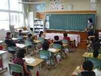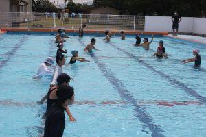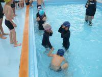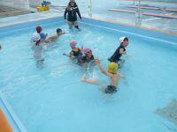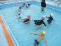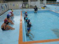 1年生は、今日、小学校で初めての水泳の学習を行いました。プールでの約束を確かめ、水に慣れる運動をしました。笑顔いっぱいの1年生でした。
